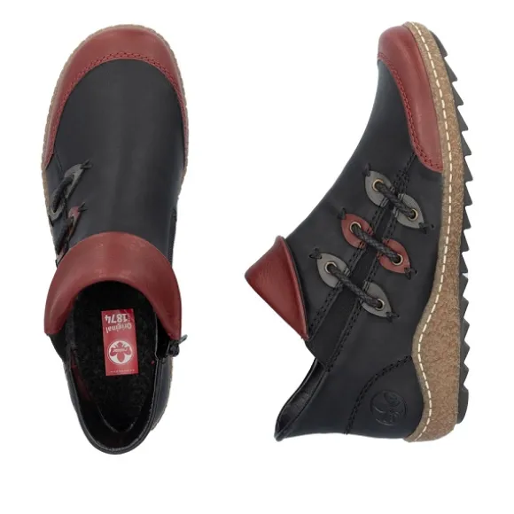 Rieker, la marque au trés bon rapport qualité prix!Chaussure montante Rieker femme Z7582 01 imitation cuir noir.
