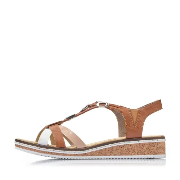 Rieker, la marque au trés bon rapport qualité prix! RIEKER V3657 81 est un nue pieds femme beige.