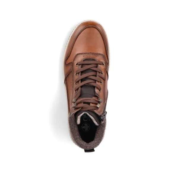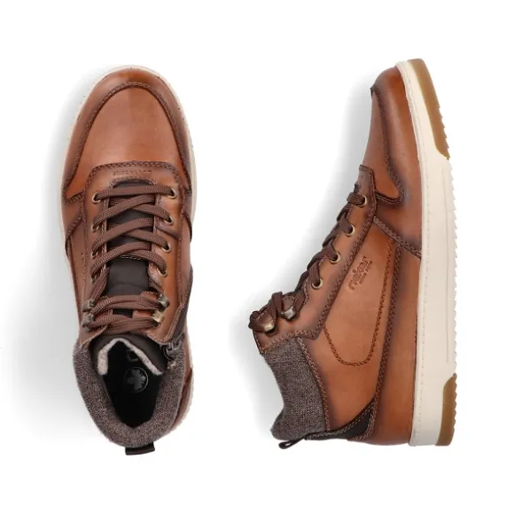 Rieker, la marque au trés bon rapport qualité prix! Rieker 17530 25 est une tennis montante homme cuir marron.