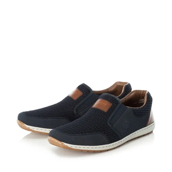 Rieker, la marque au trés bon rapport qualité prix! RIEKER 08869 14 est un mocassin homme textile bleu.